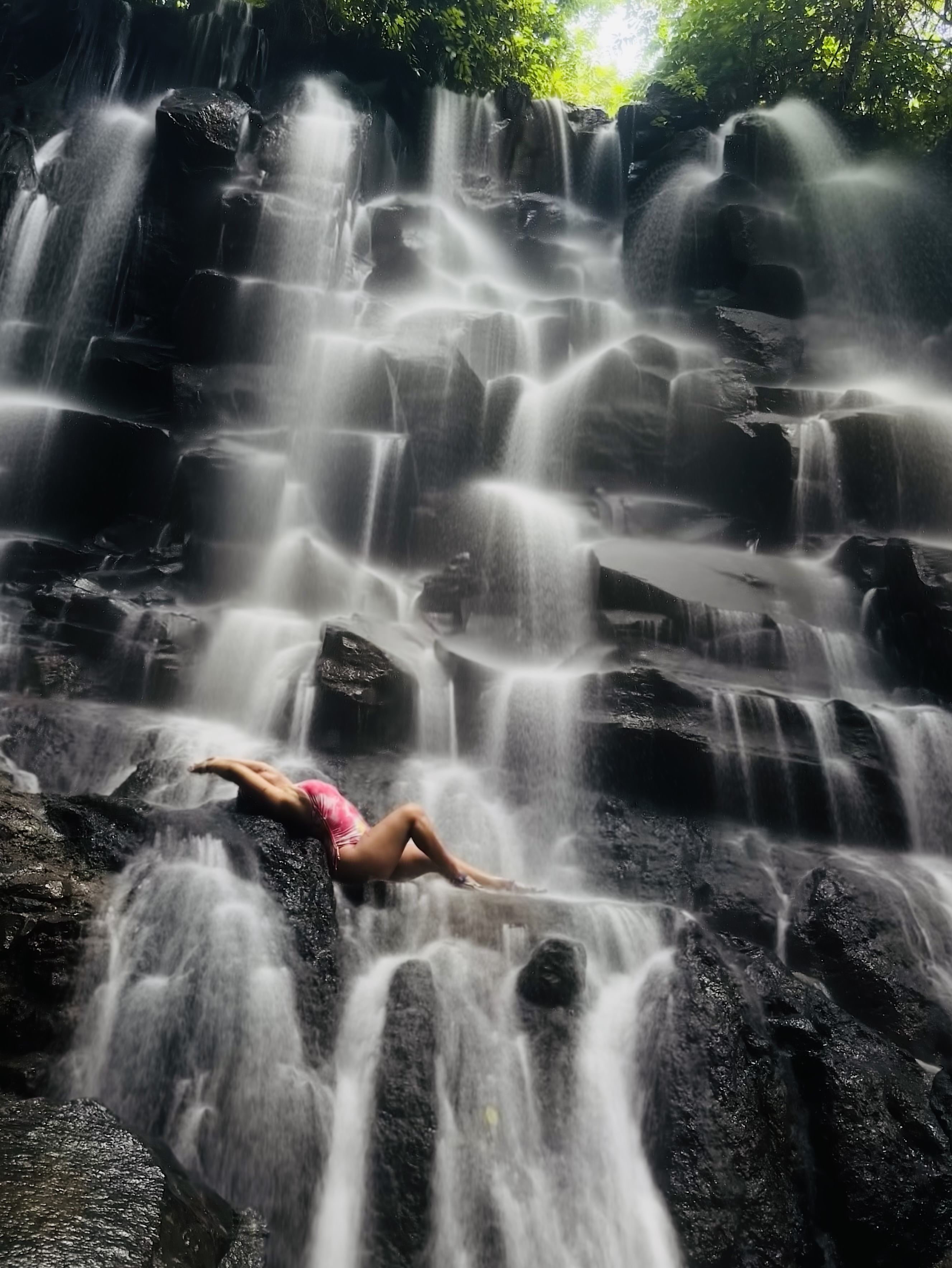 This waterfall is renowned for its distinctive rock formations and the refreshing experience of standing beneath the cascading water. It offers an environment for visitors to immerse themselves in nature, surrounded by lush tropical scenery. To reach the waterfall, you will start from the parking lot and walk down a set of cement stairs, which takes about ten minutes. Please note that the climb back up the stairs can be more challenging. You’ll then walk in about ankle deep water for another 10 minutes to reach the waterfall where you'll have the opportunity to stand beneath the falling water for a refreshing experience and snap some pictures. The total walking/hiking distance is about 400m (0.25 mi). The terrain is beginner friendly with a set of stairs, some dirt trails with rocks, and walking through ankle deep water. For this activity, it is advisable to wear a swimsuit, carry an extra set of clothes, and wear water shoes or sturdy sandals with traction to prevent slipping.
