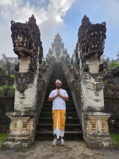 After the waterfall, you’ll take a 30-minute private bus north to Mengening Temple. For thousands of years, Balinese people believed that the water that comes from these springs heal and purify people’s inner and outer self. You will learn about the purification ritual and get to participate in it yourself. You’ll present offerings, that will be prepared for you in advance, and then get into the pool under the flowing fountains for the purification. Then you’ll finish off with some guided prayer. You can wear your swimwear underneath a provided sarong for the purification ritual. Note that you’ll want to dress conservatively (guides will provide sarongs for cover ups as needed). Also, if you are menstruating you will be prohibited from entering the temple under Balinese tradition.